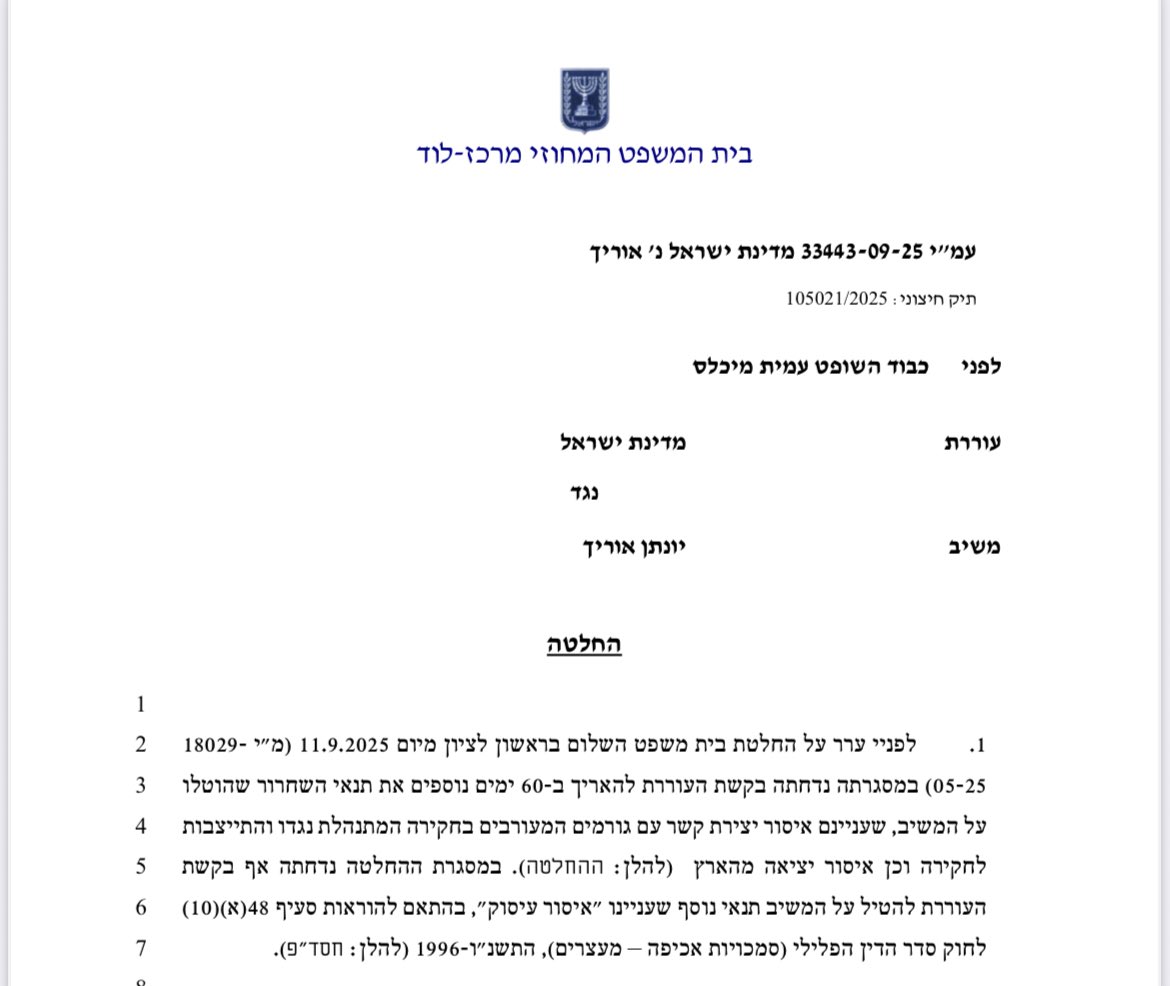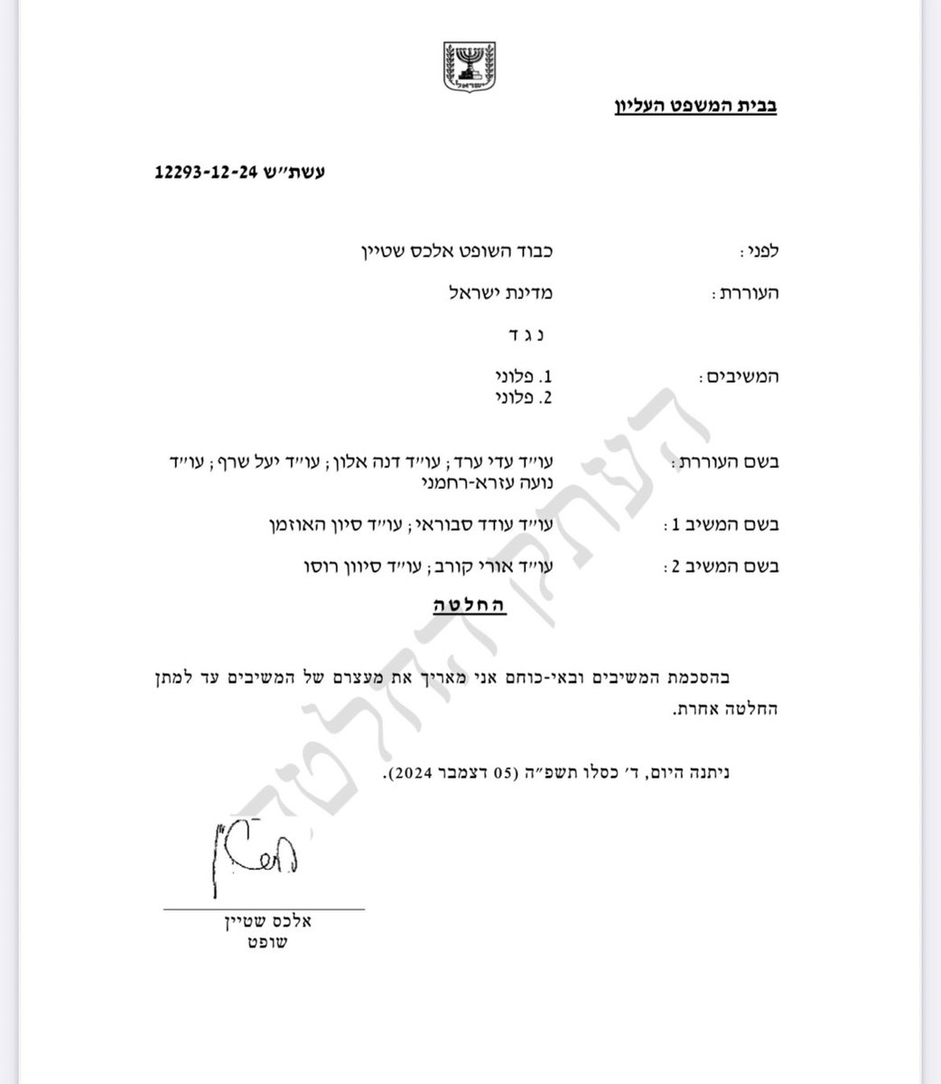 לפי ההחלטה, שניתנה אגב בהסכמת פלדשטיין ורוזנפלד, הוא האריך את מעצרם "עד החלטה אחרת".