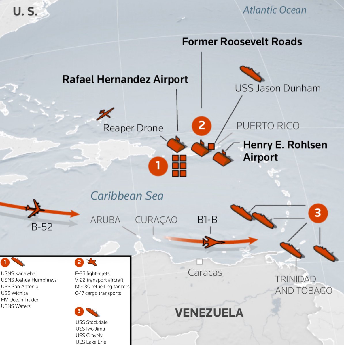W ostatnich dniach zaobserwowano wyraźne nasilenie amerykańskiej aktywności wojskowej w rejonie Karaibów, zwłaszcza w portach i na lotniskach Puerto Rico oraz Wysp Dziewiczych Stanów Zjednoczonych.