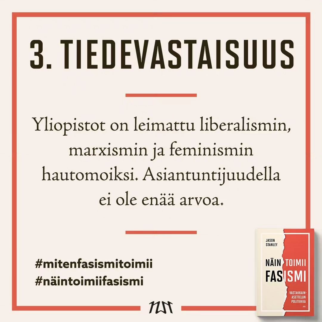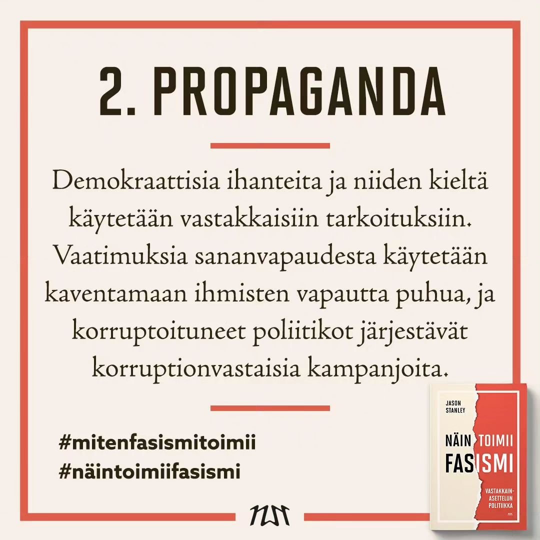 #Äärioikeisto:a ja #Fasismi:a tutkinut Yalen yliopiston filosofian professori Jason Stanley listaa kirjassaan #NäinToimiiFasismi 10 fasismin tukipylvästä: 1/6