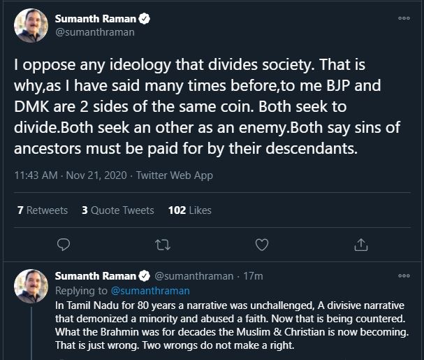 சட்டத்தை தாழ்த்தப்பட்டவர்கள் கையிலெடுக்கிறார் என்பார்கள்.இப்போ சுமத்ராமன் மீது ஊடகவியலார் விக்ரமன் சொல்லும் குற்றச்சாட்டுக்கு சுமத் அப்படி செய்திருக்க மாட்டார் என்று வாக்காலத்து வாங்குகின்றனர் சிலர். விக்ரமன் ஆதாரம் ரெண்டு கேமெரா மேன் என்று சொல்கிறார். 2
