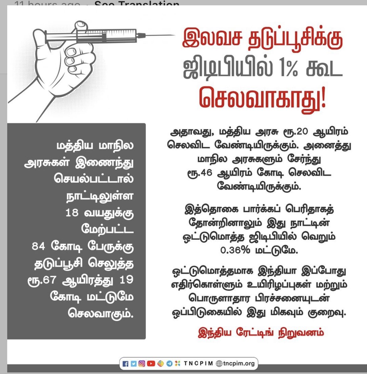 ஆனால் அதை கூட சரியான முறையில் மாநில அரசுகளுக்கு வழங்க முடியாமல் விலை ஏற்றம் அது இது என்று ஒரே குழப்பம். சரி காசை வாங்கிட்டு தடுப்பூசியை தட்டுப்பாடு இல்லாமல் வழங்க நடவடிக்கை எடுக்கனும். மோடி ஆட்சி அதுவும் செய்யவில்லை.
