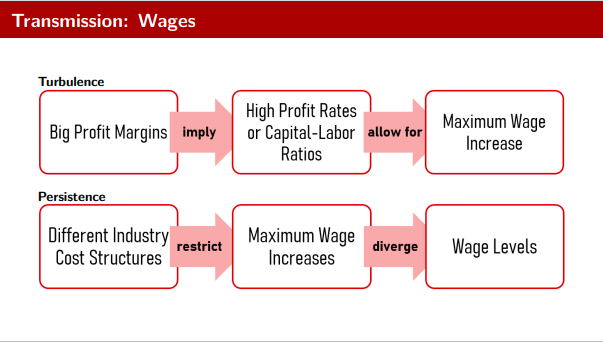 I link turbulent competition between firms and turbulent dynamics of wage increases, roughly following Marx’ intuition: “The competition between workers is only another form of the competition among capitalists.” (Grundrisse, p. 651 in the 1999 Penguin Edition)