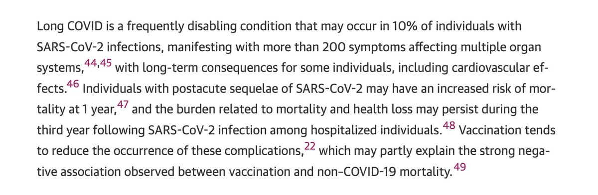 2/ Geringere Gesamtsterblichkeit bei Geimpften kann trotz aufwändiger Korrektur für confounder 2 Ursachen haben: 1. healthy vaccine bias (Geimpfte leben trotz höherer Komorbidität gesünder und werden besser versorgt) 2. geringere Langzeitfolgen nach SARS-CoV2-Infektion bei Geimpften (bzw. Kombination).