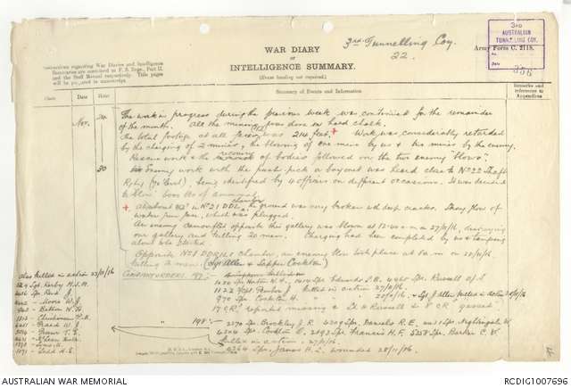 There are 22 dead Australian sappers recorded at Hersin Communal Cemetery Extension in CWGC website from Australian Tunneling Corps having all died on a single day 27/11/1916. The most that they ever lost in a single action. But how and why? Nothing found on the web so far.
