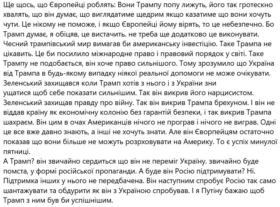 https://twitter.com/nexta_tv/status/19156711673875132962. Sein Imperialkrieg wird also sehr rasch weitergehen, bloss vermutlich nicht gegen die Ukraine (die sich als zu zäh erwiesen hat), sondern z.B. gegen das Baltikum, das nach einem abgesprochenen oder erwarteten NATO-Bailout von Trump recht schwach dastehen könnte.