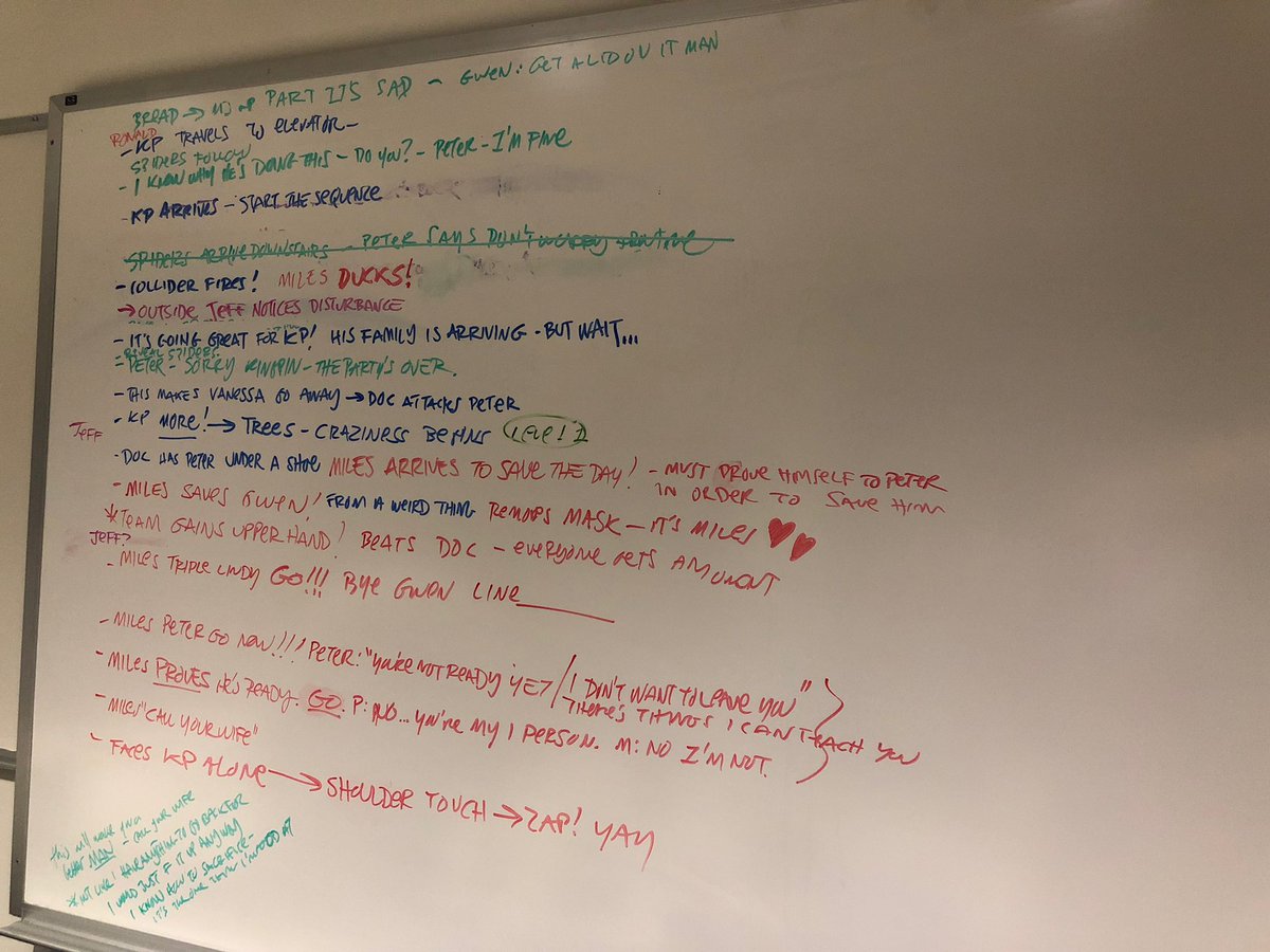 So here is the “storywheel” of @SpiderVerse . We did a big shakeup of the story less than a year from release and we had to figure out how to reshape sequences we had already boarded and animated and fold them in with new stuff. Oh and we rebroke the whole third act.