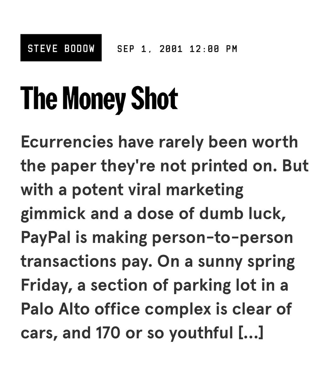 https://twitter.com/philopublius9/status/1902771567416779195The article, appearing in Wired on Sept. 1, 2001, begins with what Thiel revealed about PayPal’s successes and transformative potential at a talk attended by the journalist in Palo Alto. (2)