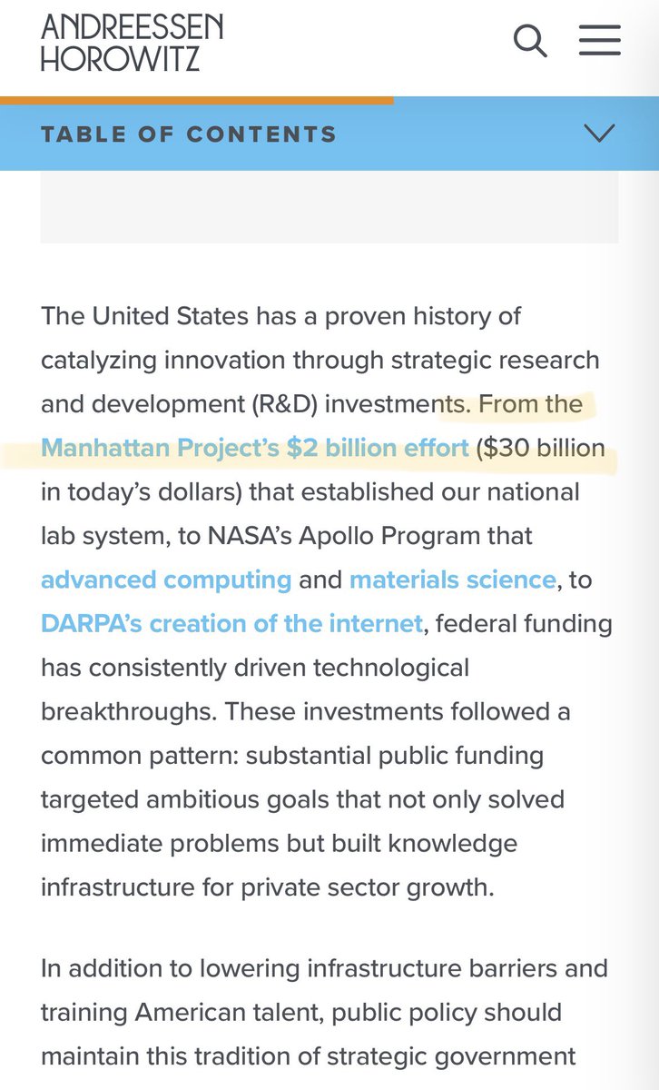 In fact, that’s the very point of Andreessen-Horotwitz’s/a16z’s “American Dynamism”: