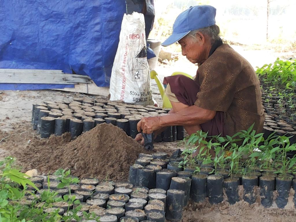 Beginilah lahan yang dihadapi. Pasir putih yang menyilaukan mata. Sangat poros sehingga tidak mampu mengikat air. Jika hujan bersifat asam karena kandungan feritnya, dan suhu pasir 62,4 derajat Celcius pada pukul 10 pagi. Belum lagi kalo musim penghujan dan petir. Petir bisa sampai ke tanah.
