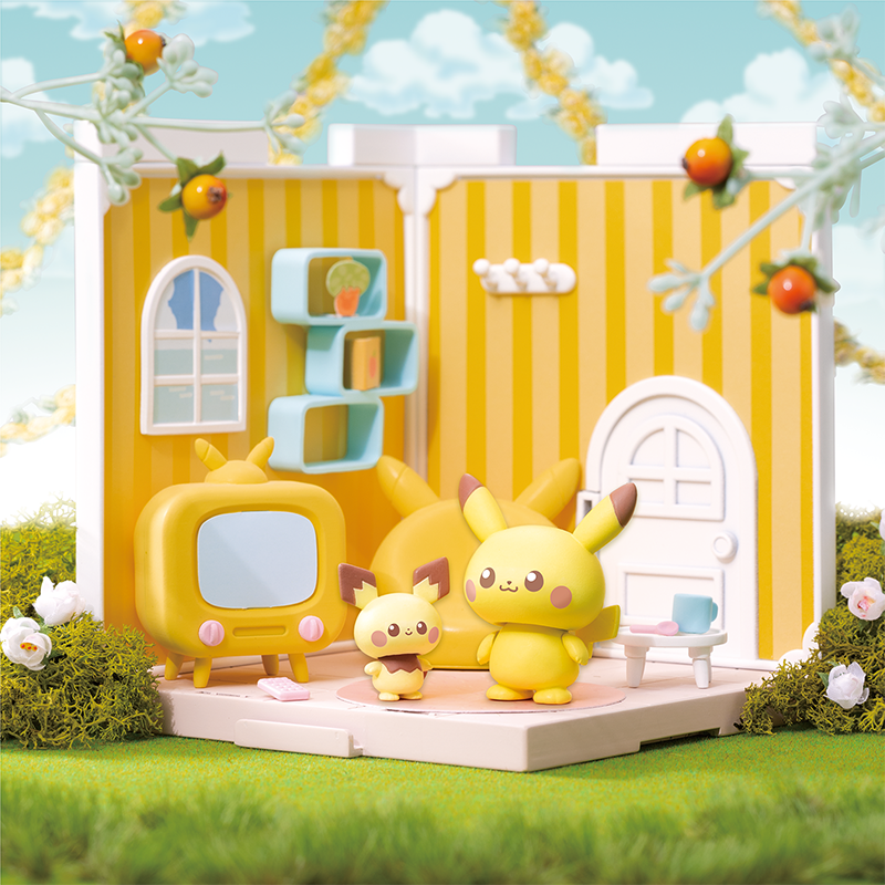 Adorable promotional images for the Poké Peace House sets. Thread starting with the lounge featuring Scorbunny & Espurr and living room featuring Pichu & Pikachu. More below👇