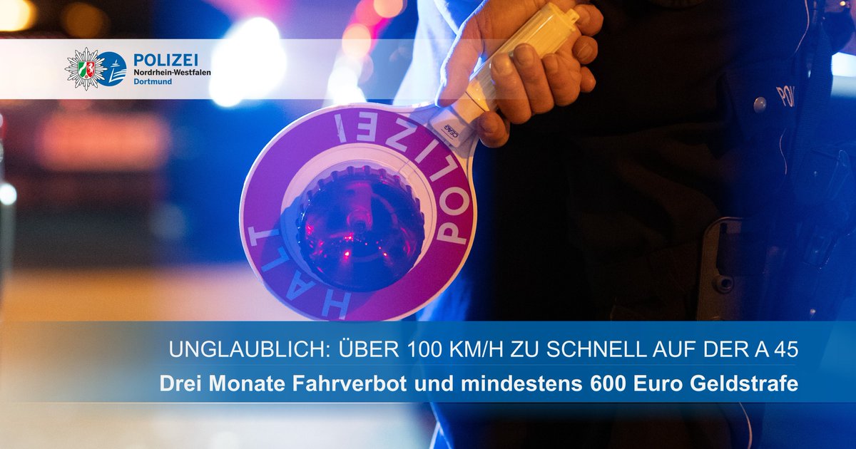 (2/5) ℹ Auf der A 45 in Richtung Dortmund ist gestern Vormittag in Höhe des Rastplatzes Brunsbecke ein Mann geblitzt worden, der bei erlaubten 100 km/h mit sage und schreibe 204 km/h unterwegs war. Abzüglich der Toleranz von drei Prozent bleibt eine Überschreitung von 97 km/h.