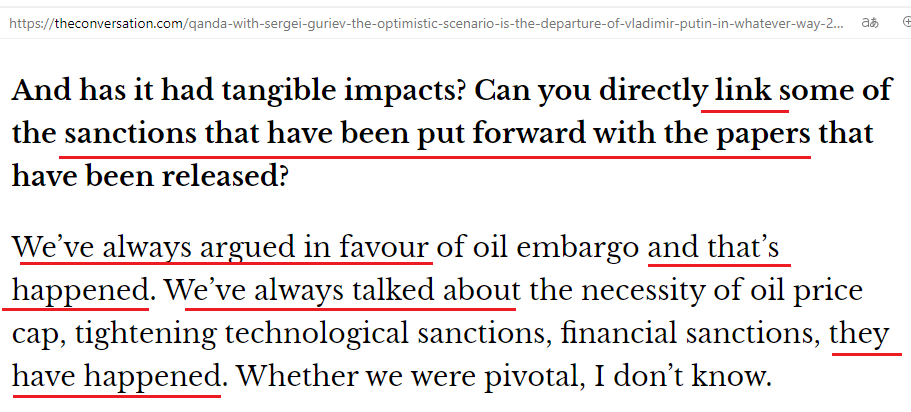 2/6 Мы промотировали конкретные санкции и они были приняты. Но есть ли в том наша заслуга? Неизвестно. Всей правды мы никогда не узнаем