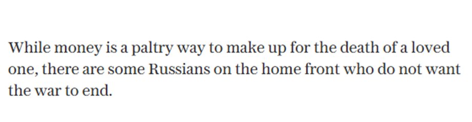 Россияне, пишет Telegraph, настолько презренное быдло, что требуют продолжения войны, чтобы их родные продолжали воевать и погибать, а все ради получения «военных» выплат
