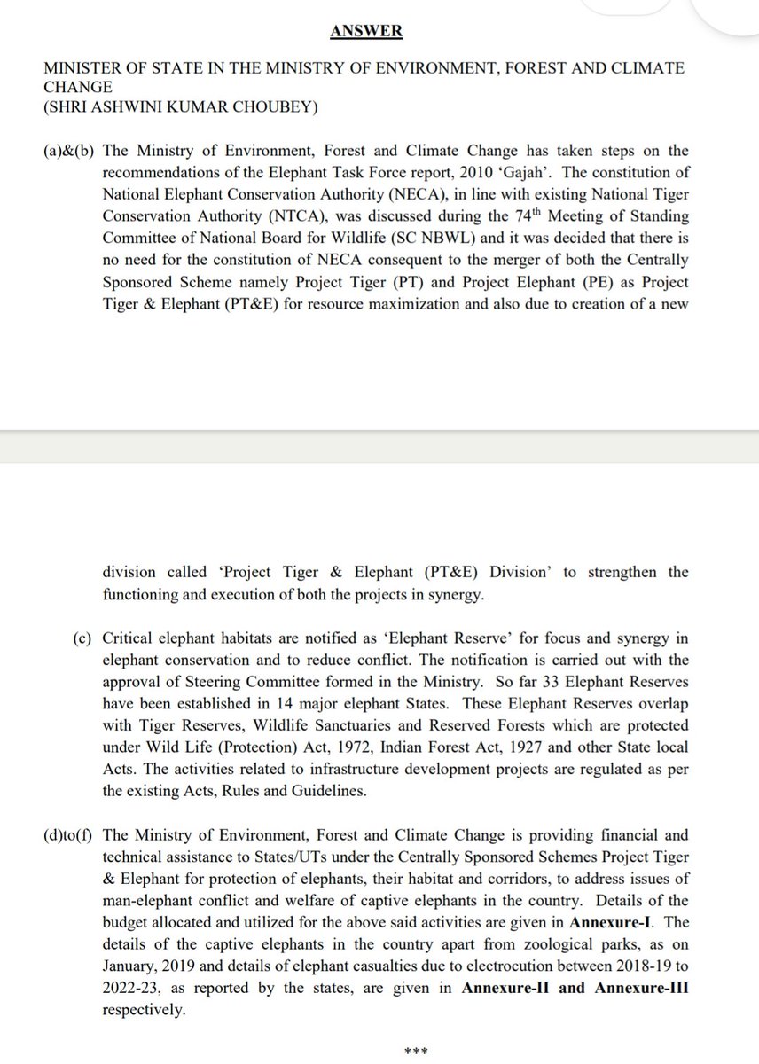 #TodayinParliament sought information from the Govt of India regarding non-implementation of the Gajah Report, which the Elephant Task Force submitted in way back in 2010 containing critical recommendations to conserve elephants & arrest human-elephant conflict in India (1/4).