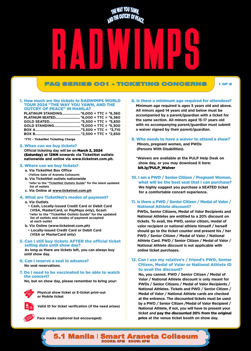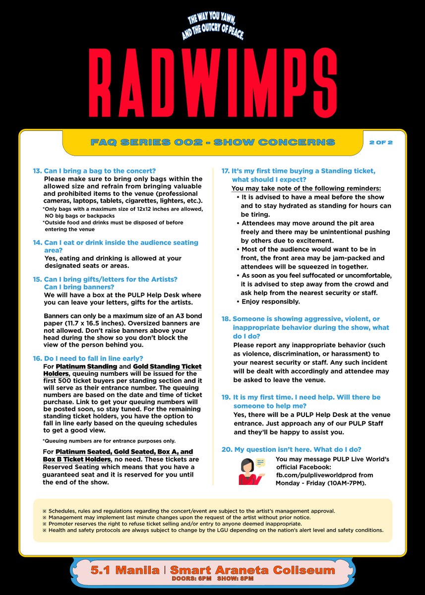 Feeling anxious about what to do during #RADWIMPSinMANILA? Don't fret! Our Show Concerns FAQs have you covered. Your peace of mind is our priority. Dive in and ease those worries! 😉🥰