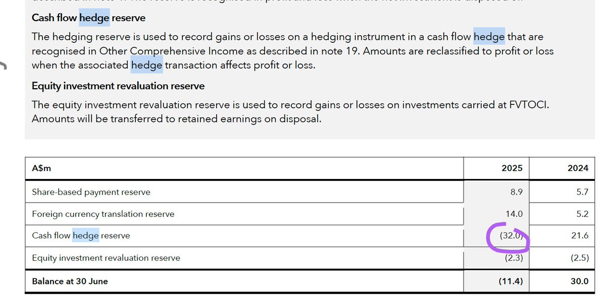 https://twitter.com/puppyeh1/status/19609547324760436091) Running hedge m2m losses through OCI. I saw zero comment on this post $HUM.AX annual numbers. Humm hedges interest rates to protect their NIM and the accounts make it clear that hedges in the accounts are 'effective' - which means simply every $ of hedge losses is offset...