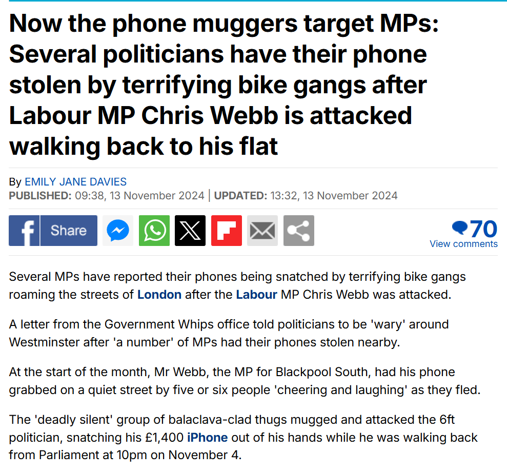 Whilst criminals with HUNDREDS of offences avoid prison, we are facing an epidemic in thefts, robberies, shoplifting. It makes our lives worse, and increases the cost of everything.