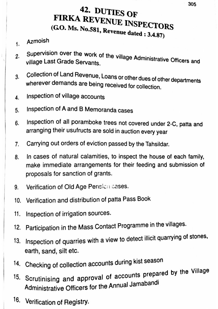 Duties of Firka Revenue Inspector 581 dated 03.04.1987 G.O.Ms.no