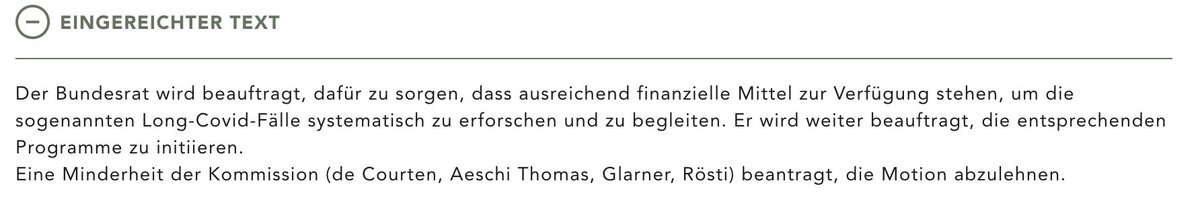Das @BAG_OFSP_UFSP will kein Register für #LongCovid: «In einem Register werden immer besonders schützenswerte Personendaten zum Gesundheitszustand bearbeitet. Wir hätten neue gesetzliche Grundlagen schaffen müssen; und das hätte mehrere Jahre beansprucht.» 1/