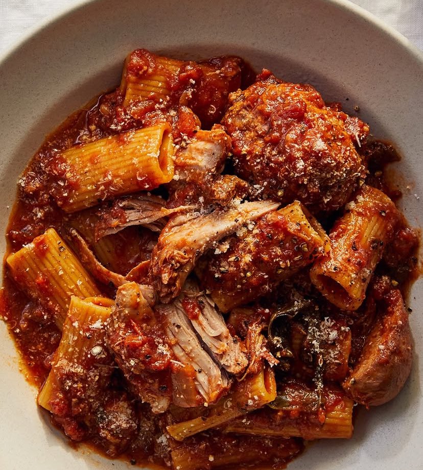« ‘O Rraù » comme on dit en dialecte local, c’est un plat iconique de la ville, qui n’a rien à voir avec ce qu’on pourrait appeler « une bolognaise », c’est vraiment une autre dimension. Puisque j’ai affaire à des gourmands on va partir sur la version augmentée de la recette.