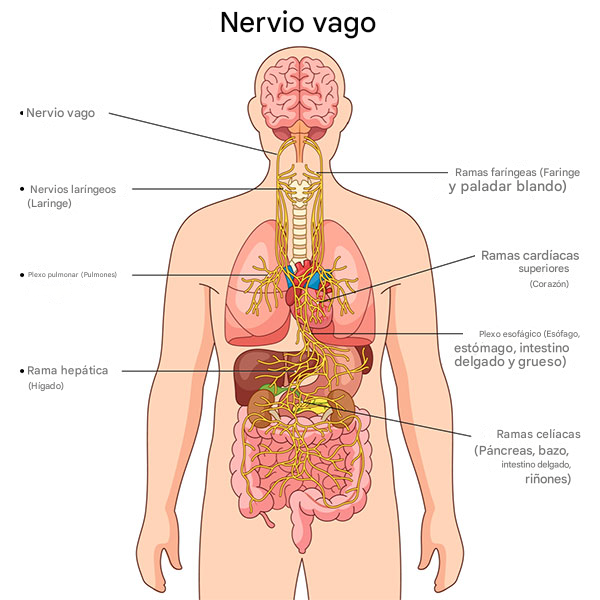 El nervio vago conecta el cerebro con el intestino, el corazón y los pulmones.
