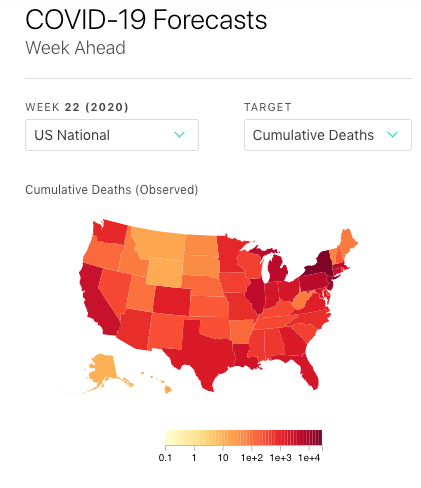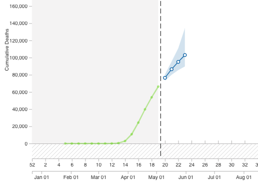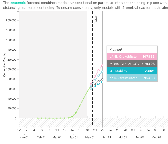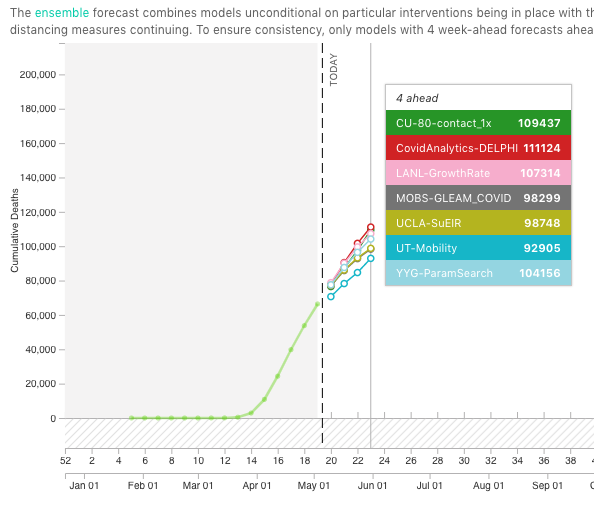 The ensemble model is now 85-90% certain that we will reach 100K #COVID19 reported deaths in the US by May 30.https://twitter.com/reichlab/status/1257740028635222018
