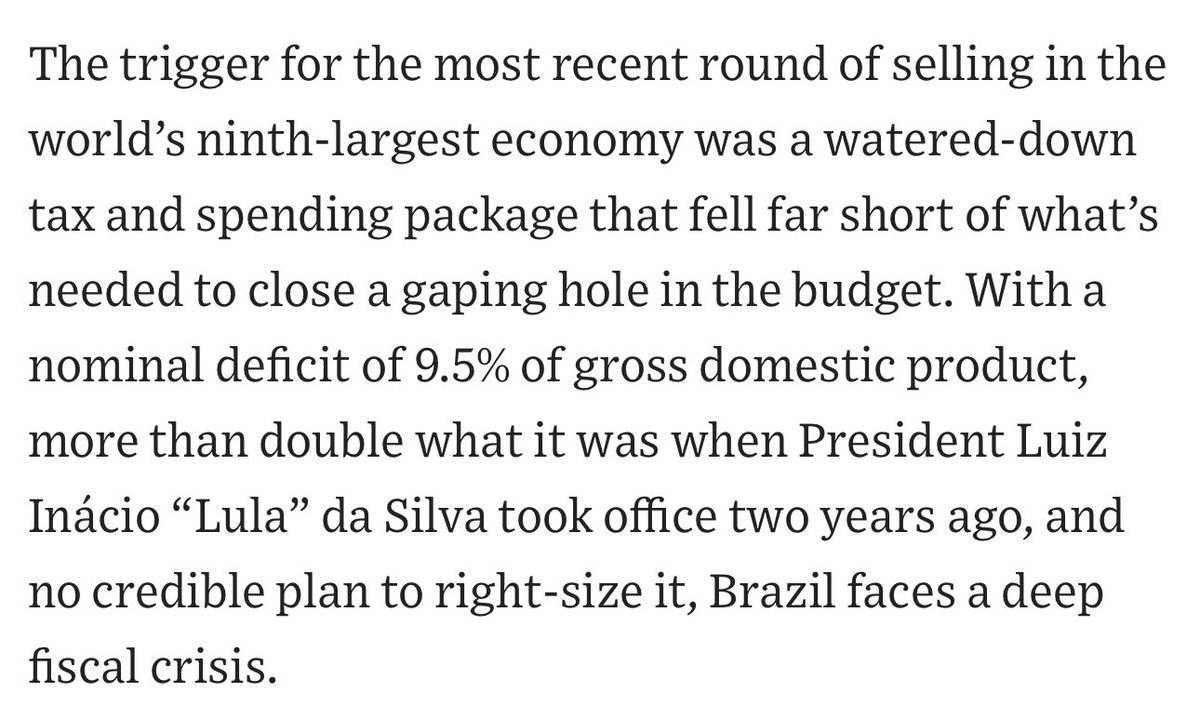 Aqui ela fala sobre o pacote de corte de gastos desidratado e o déficit nominal ter subido 9,5% do PIB, mais que o dobro de quando Lula tomou posse.