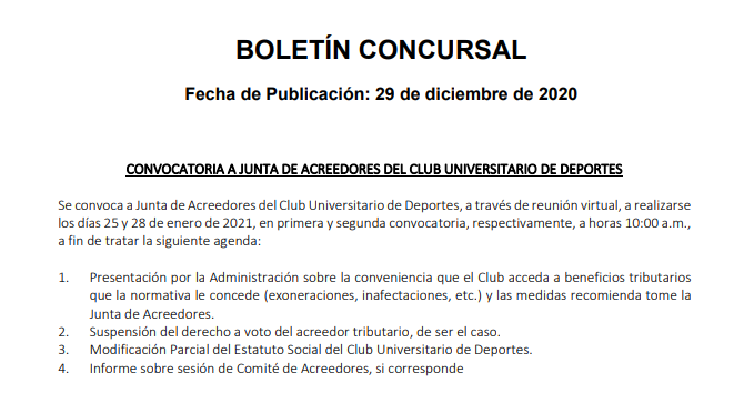 Contexto: la “U” ingresó a proceso en 2012. En 2017, aprobó su plan de reestructuración. Es el ÚNICO con 3 activos (Monu,Lolo y Campomar). Se optó por su gestión (concesión, etc) y así pagar. Nunca x flujo corriente. En 2020, plan venció sin mayor avance por peleas (Gremco/Sunat)