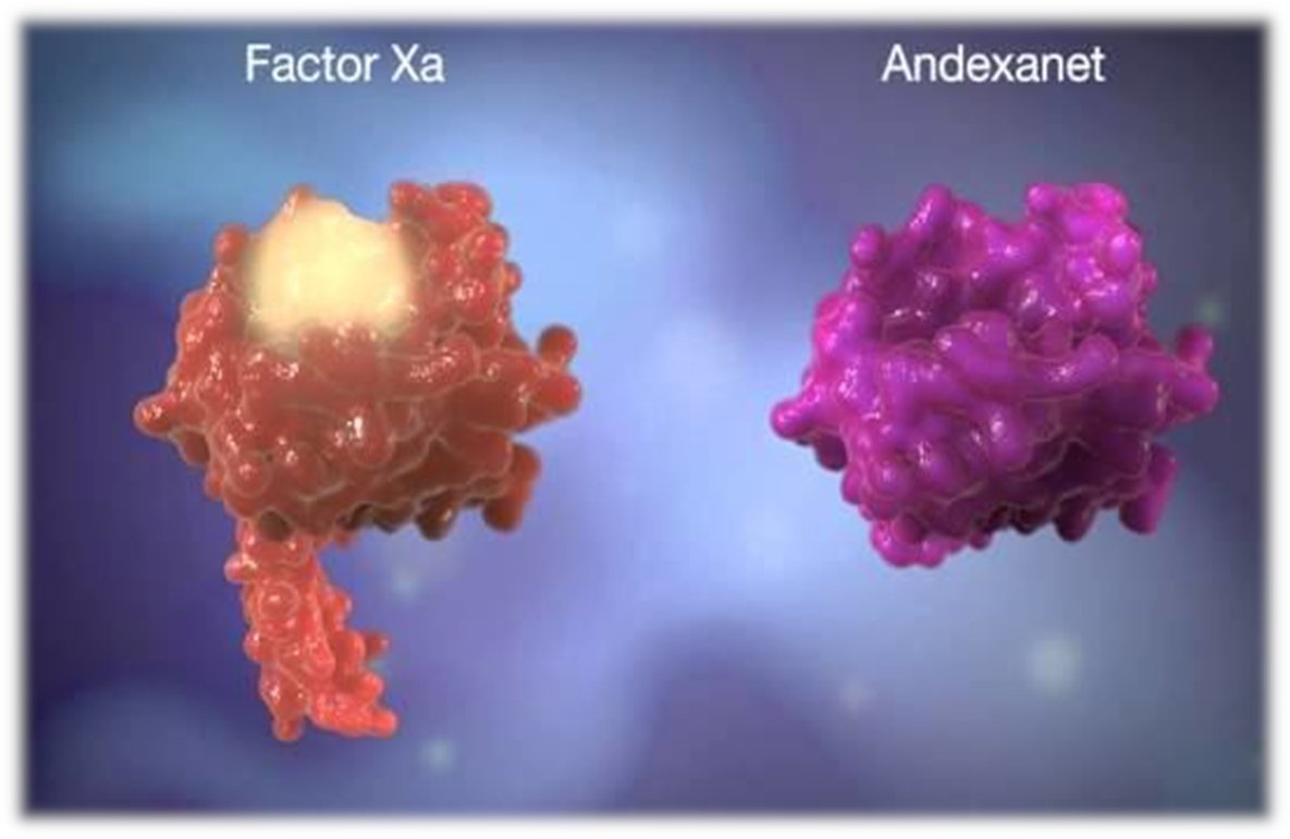 Andexanet is a decoy factor Xa molecule, that soaks up drugs like apixaban & rivaroxaban. It’s modified so it’s supposedly inactive – it lacks membrane binding and is enzymatically inactive. A great concept – a “specific” reversal agent not a rubbishy non-specific one like PCC.