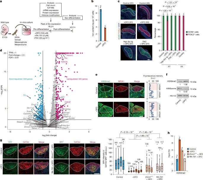 Myszy miały "XY". Jednak, żeby doszło do aktywacji genu SRY, położonego na Y i inicjującego rozwój zarodkowy męski, potrzebny jest enzym (demetylaza histonowa), którego działanie zależy do żelaza.