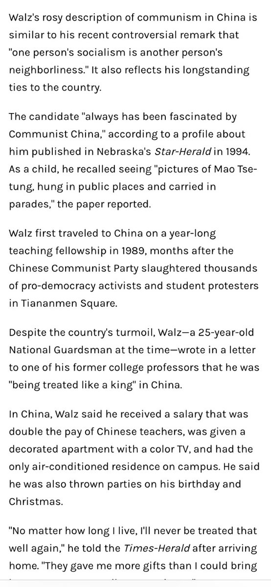 Tim Walz fanboying all over the Chinese Communist Party WTF