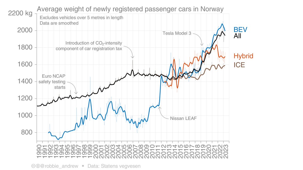 https://twitter.com/robbie_andrew/status/1662439770725728259The CO₂-intensity component of the car registration tax, introduced in January 2007, introduced a counter-balancing driver.