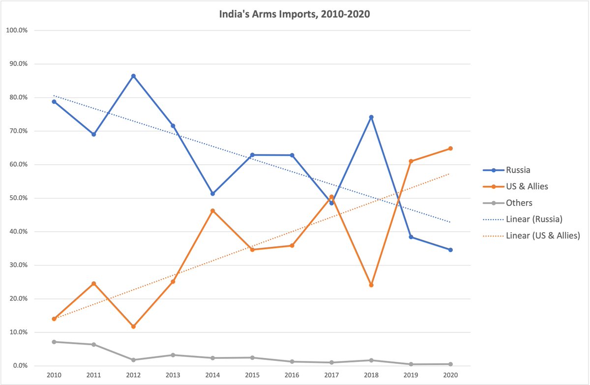 https://twitter.com/PaliwalAvi/status/1497701979363155975India's dependence on Russian arms itself has been declining since 2012 and will accelerate if current sanctions stay for long, damaging Russian manufacturing. But I'd wager that India's vote would not have been different even at low import levels. 2/
