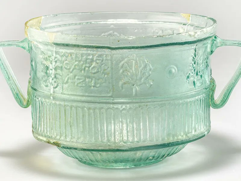 El molde de esta manera podía reutilizarse y como se conocían ya las técnicas para teñir el cristal, podía hacer piezas de todos los colores y de muchas formas. Estuvo de moda en todo el Imperio. Sabemos su nombre porque en todas sus realizaciones añadía su firma, su marca: Ennion Epoiese, Ennion me hizo, en griego. sigue +