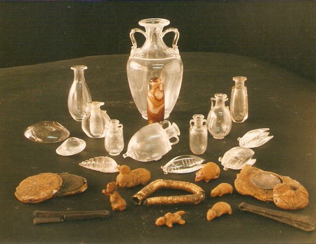 La mayoría de las tumbas habían sido saqueadas hace tal vez siglos, pero la tumba 25 estaba intacta y junto con una urna de plomo guardaba un tesoro hasta entonces único en el mundo, consistente en un ajuar formado por piezas de ambar, una redecilla de oro, una jarrita de ágata y diversos objetos realizados en cristal de roca... sigue +