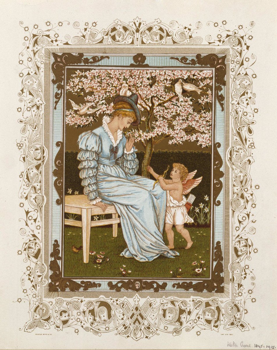 (Card c. 1884 by Walter Crane, bequeathed to the V&A by Miss Edith Hipkins).