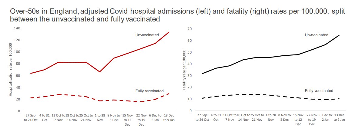 First, their risk compared to the fully vaccinated only increased as Omicron cases rose. They're now 7x more likely to be hospitalised and the same when it comes to death.