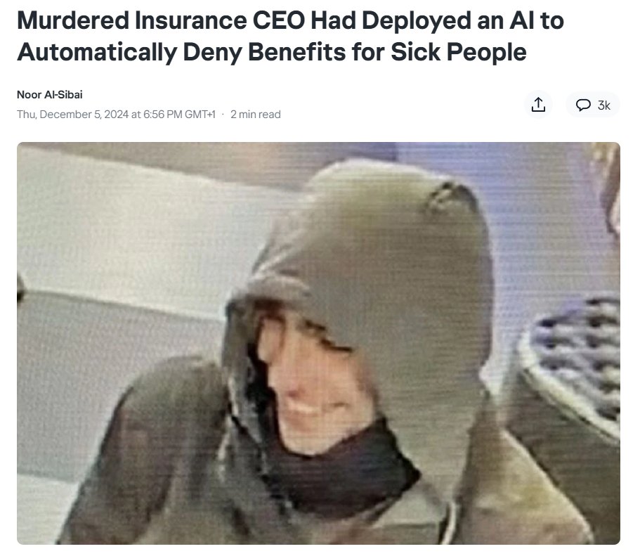 2) Rok temu United Healthcare uruchomiło program AI, którego celem było podważanie rekomendacji lekarzy i odmawianie płatności za leczenie.
