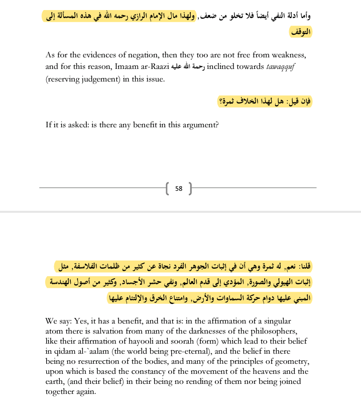 the rationally sound position between both for this reason, but followes up with the fact that despite the rational weakness of Atomism, it is still preferred and Hylomorphism is critiqued, by the mutakallimin because it helps or benefits in defending the Sunni creed.
