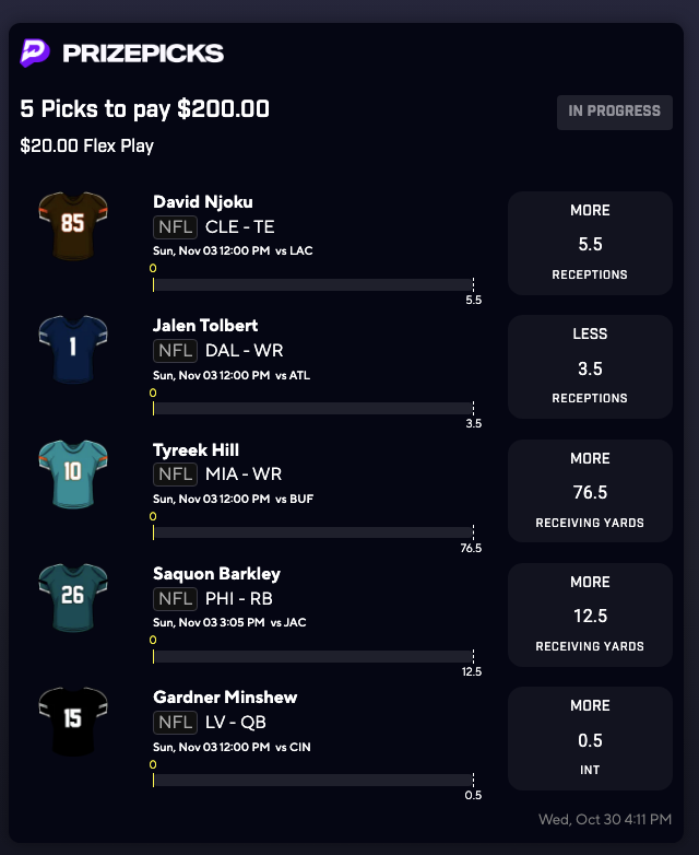 Here are 17 bets I recently took for Week 3: #17 Joe Burrow LESS THAN 0.5 interceptions
