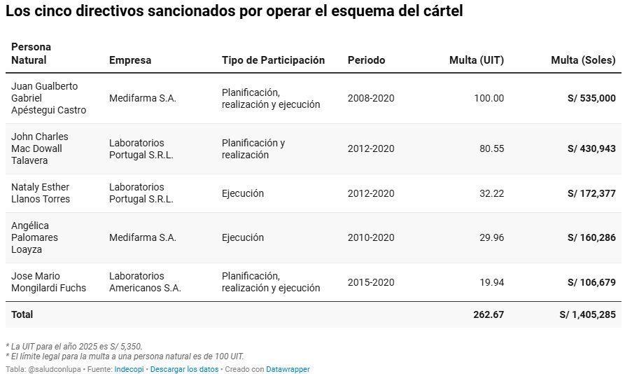 Además, 5 directores ejecutivos fueron sancionados con S/ 1.4 millones por actuar como operadores del esquema: