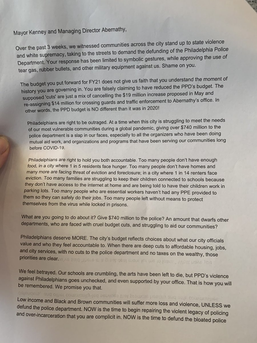 https://twitter.com/abgutman/status/1275538805450330113Whether it’s right or wrong for the mayor and managing director, instead of sending a staffer to accept a letter from constituents with strong (and, yes, loud) views on a city budget, to have sent police — not Civil Affairs, but COUNTERTERRORISM— is not for me to say.