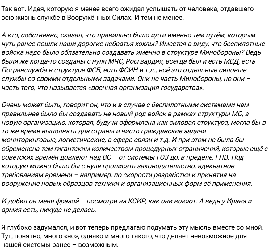 2/ "Who, exactly, said it was right to follow the path taken a little earlier by [the Ukrainian military]? Does this mean that unmanned forces had to be created within the Russian Ministry of Defense?"