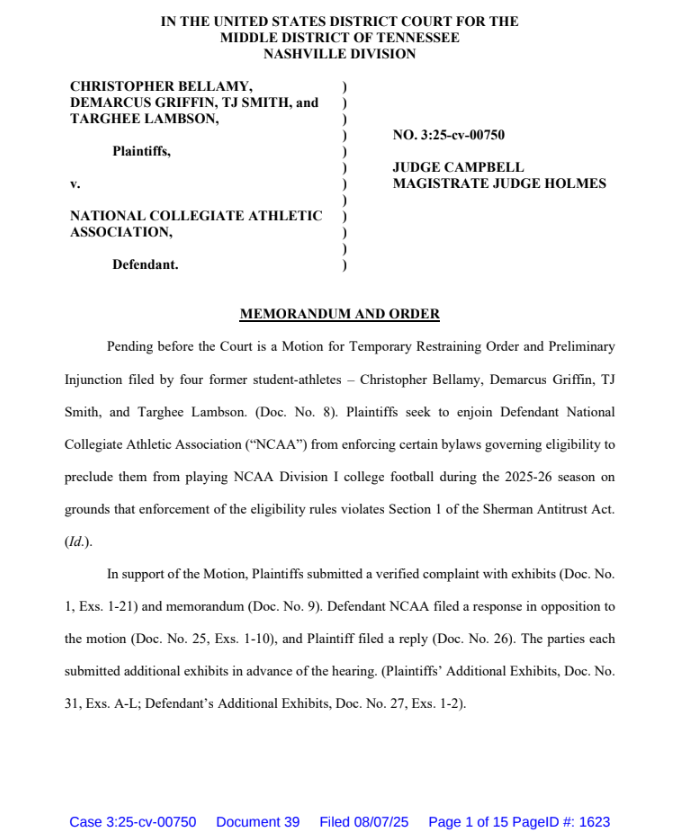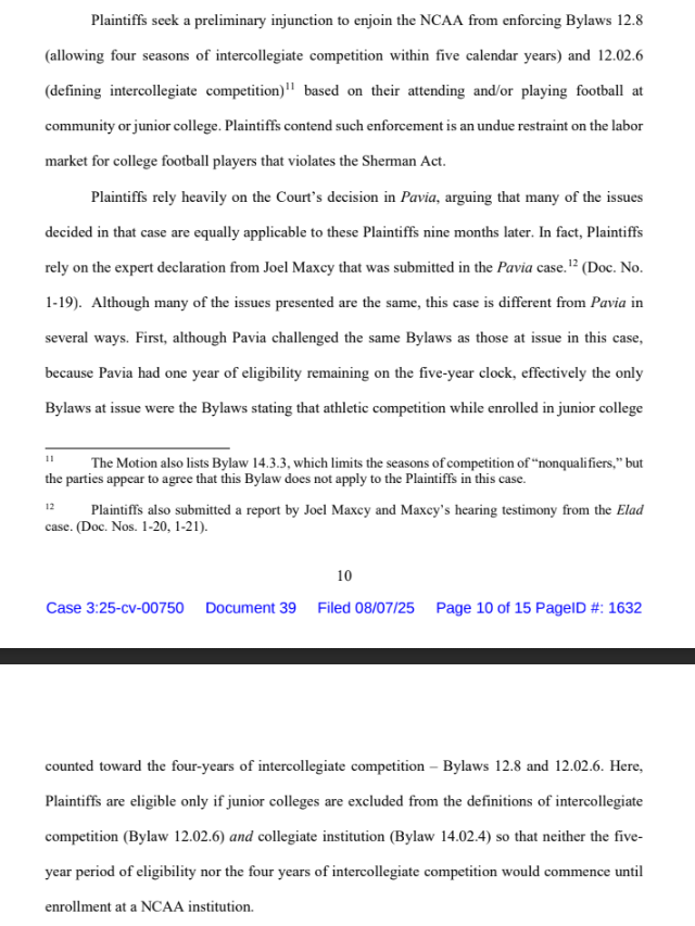 Judge Campbell noted while the plaintiffs relied heavily on Pavia, there are differences between the two cases -- namely that Pavia still had a year in his five-year clock and these players do not.