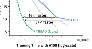 it says 'the DiT architecture literally doesn't learn datasets through some implicit architectural defect; look at how the FID bottoms out so quickly'.
