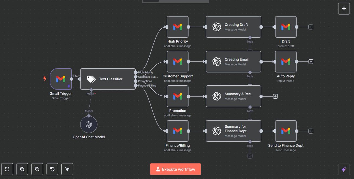 The Solution: An n8n workflow that automatically classifies, responds to and routes emails using AI.