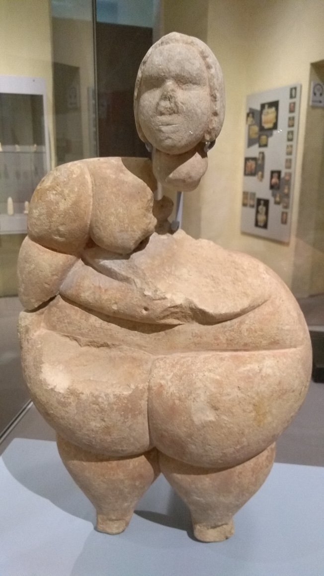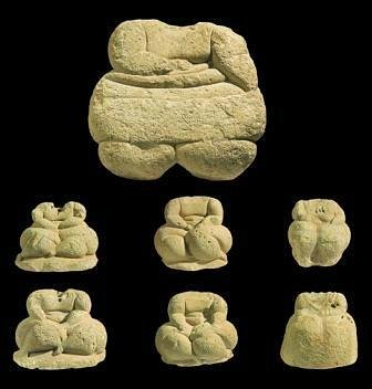 2/ From around 5000BC up to 2000BC multiple figures both large & small were created with very similar themes - pleated skirt, extremely large buttocks & thighs, tiny feet & and similar hair style. These were originally thought to portray a "Mother Goddess" cult.
