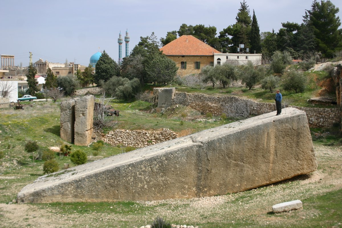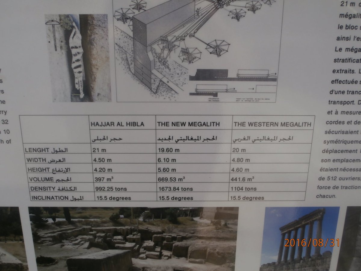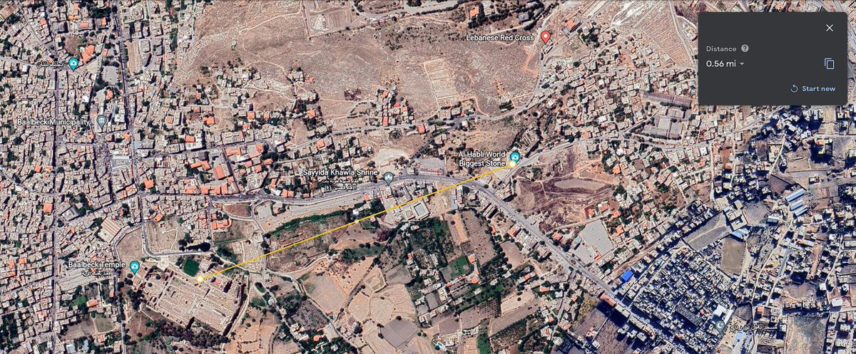 2/ The "quarry" is located less than 1km (.6miles) from the temple complex in Baalbek Lebanon. The Hajjar al-Hibla being the most prominent feature jutting out at a 15.5 deg angle. The quarry is actually much larger with a modern road cutting it in two both with large megaliths.