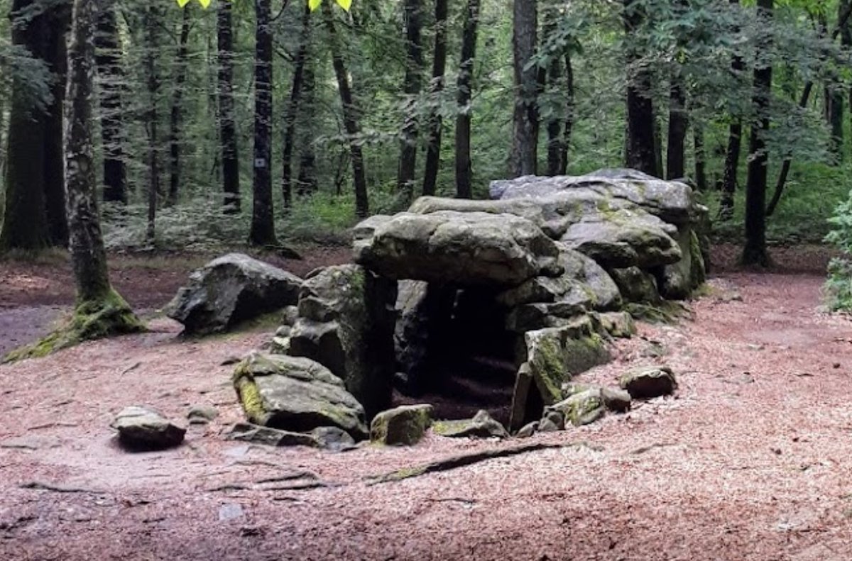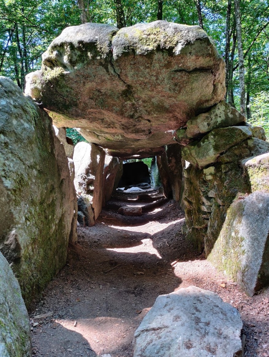 2/ Dolmens with nubs or "breasts" as they're locally called are uncommon (at least to my understanding). La Maison des Fées is a passage tomb or "covered alley" dolmen first described in 15C AD. Its roughly 12m long, and ~1.3m wide with 8 capstones up to 40t in weight.