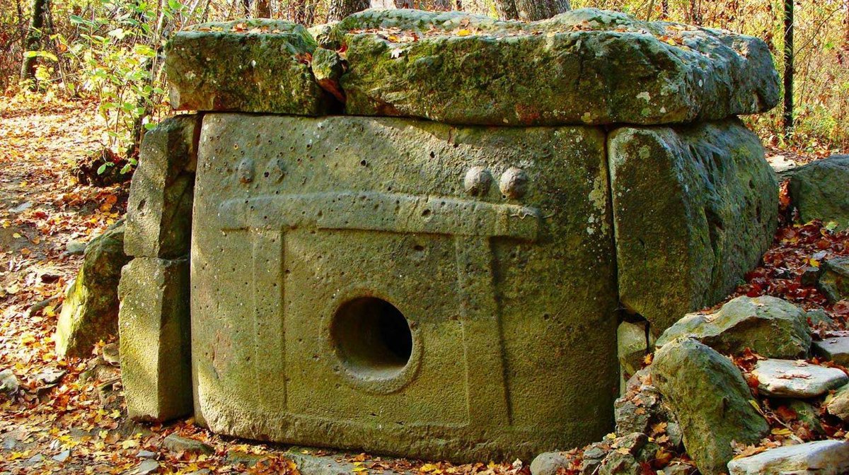 2/ This dolmen is located near Gelendzhik, in a village named Shiroka Shchel (Широкая Щель). Its situated in a small park behind a few stores. In a region with literally thousands of dolmens, this one is a rarity. Very few have the embossed decorative elements. Its said to be roughly dated around ~3000BC to ~2700BC.